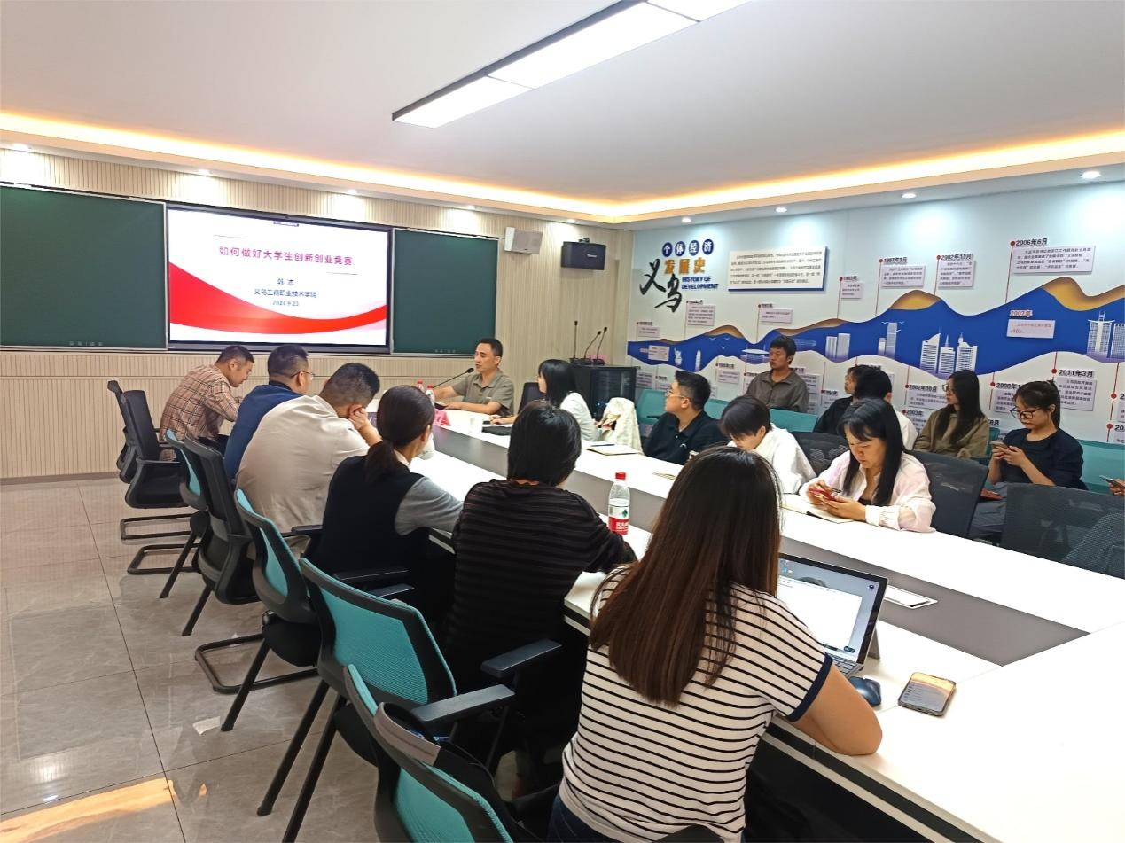 为提前谋划好2025年创新创业竞赛工作,提升参赛项目竞争力,best365网页版登录官方网站于9月23日上午邀请“挑战杯”竞赛全国优秀指导教师、江苏大学韩志教授作专题辅导。